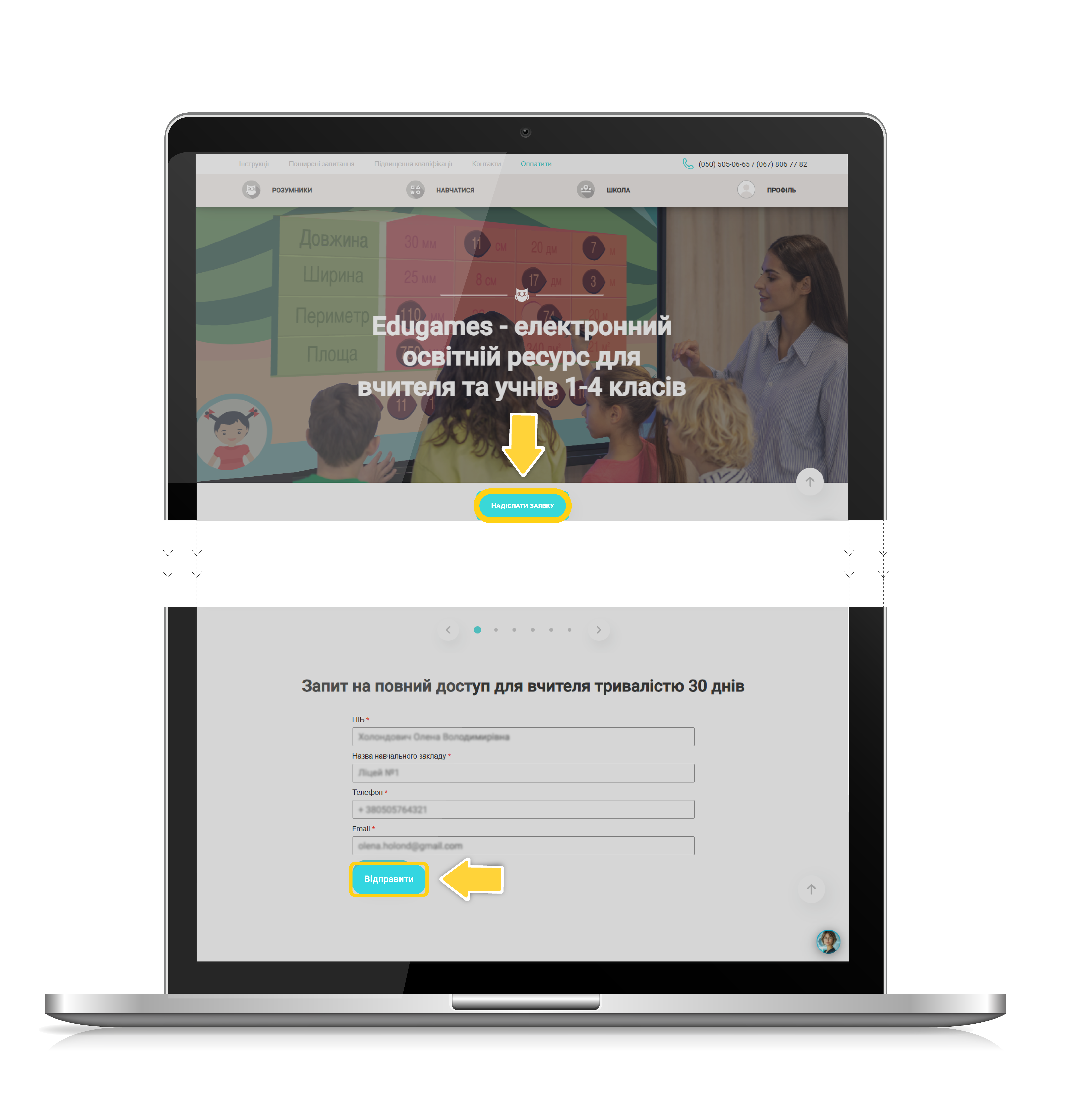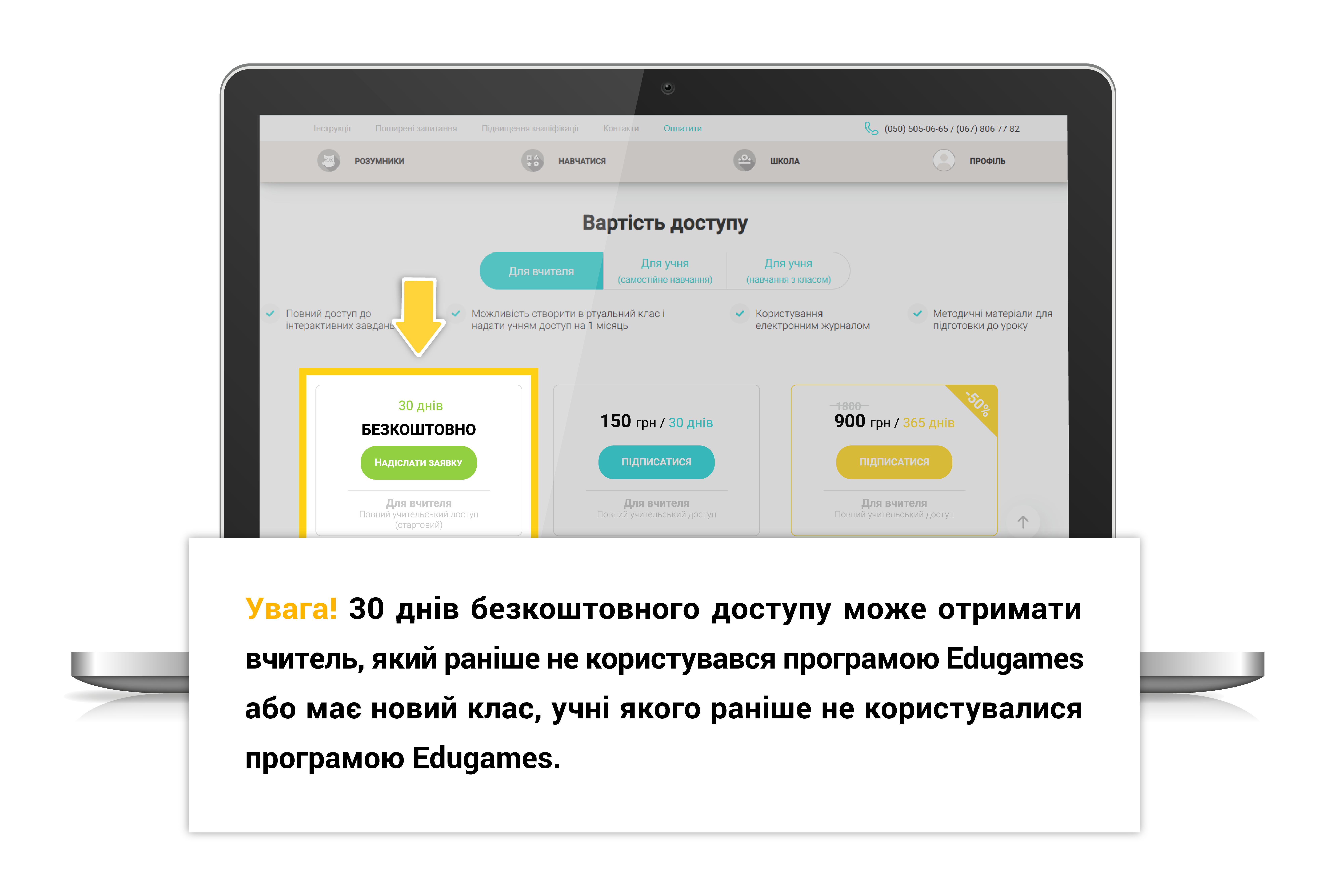 Для отримання безкоштовного вчительського доступу на 30 днів натисніть «Надіслати заявку»
