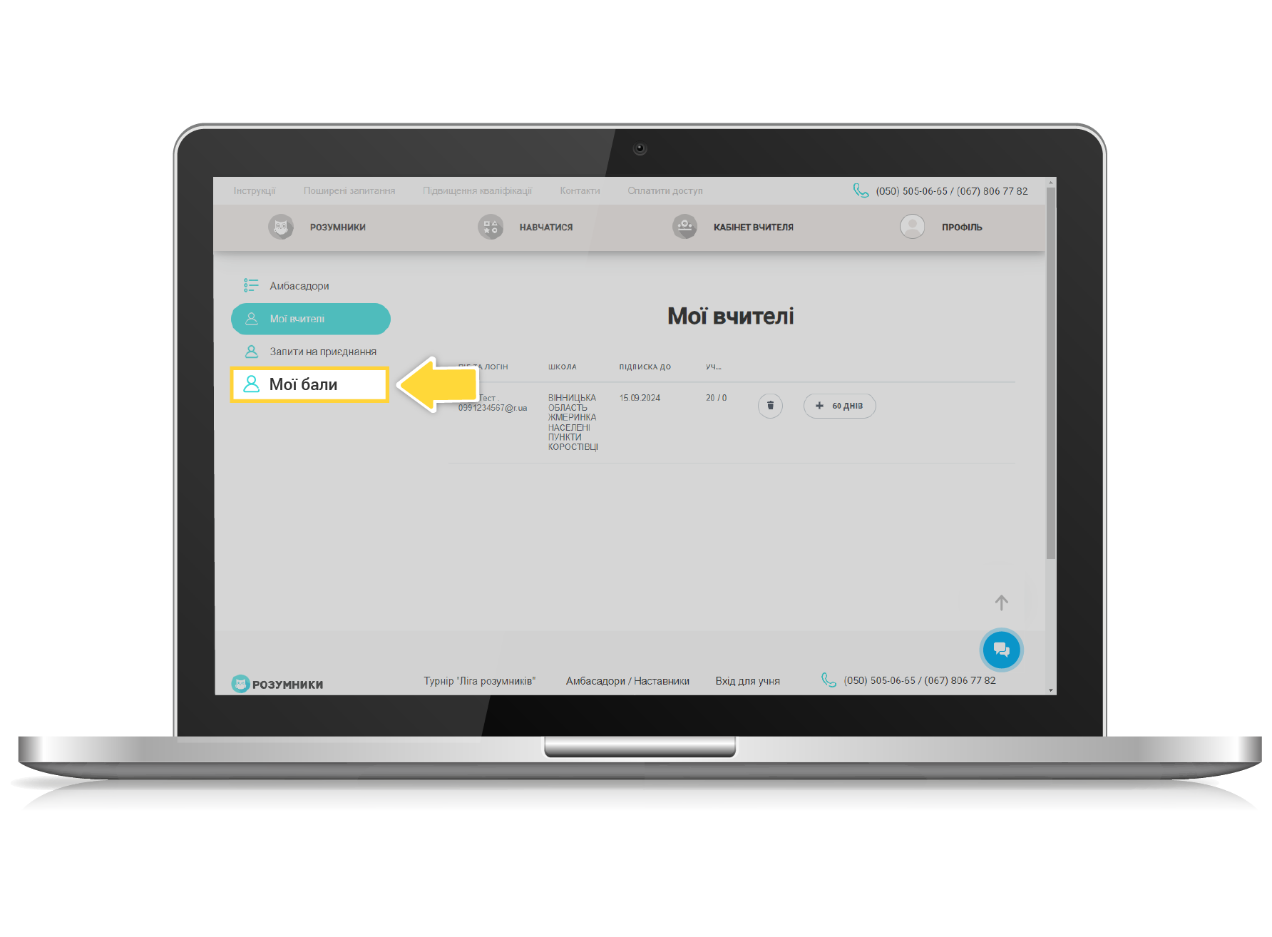 - переглянути свої поточні бали, натиснувши кнопку «ДО МОЇХ ВЧИТЕЛІВ»;