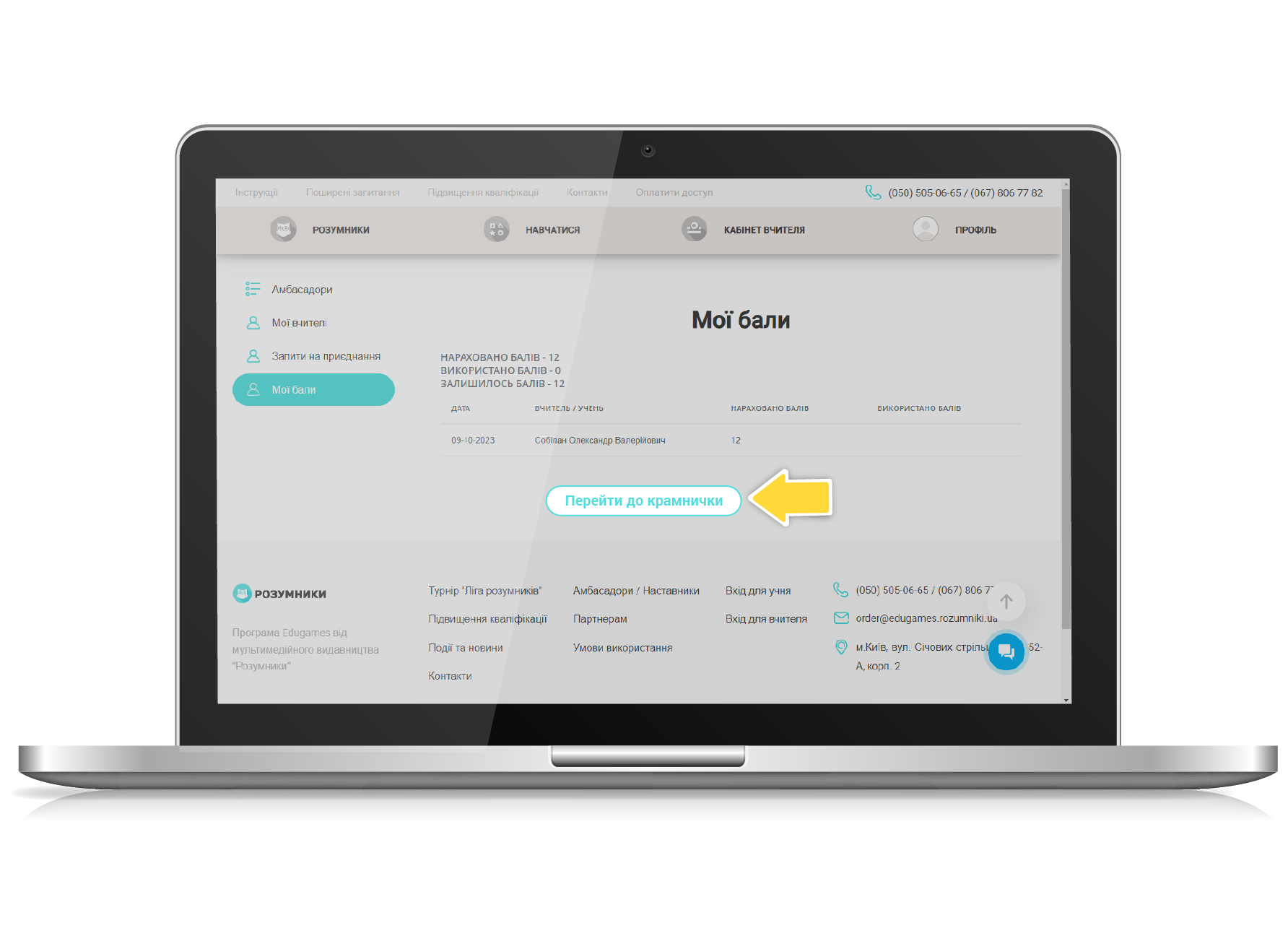 - натиснути в меню сторінки «Мої бали»;