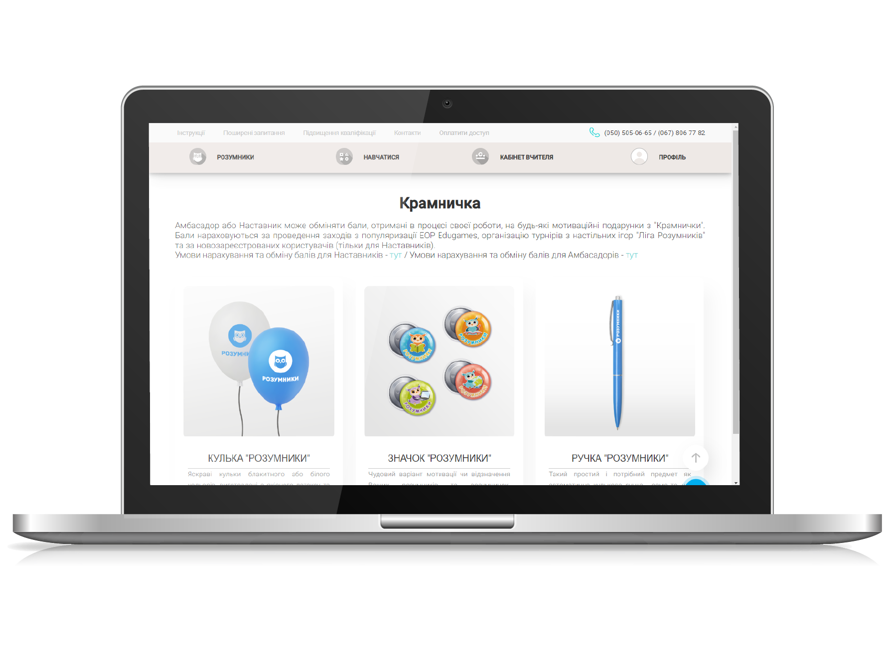 - надіслати заявку менеджерові контакт-центру на обмін балів на подарунок на електронну пошту office.rozumnyky@gmail.com, або на viber за номером +38 (050) 505-06-65, надавши свої ПІБ, логін в Edugames, контактний номер телефону для зв'язку та бажаний подарунок;